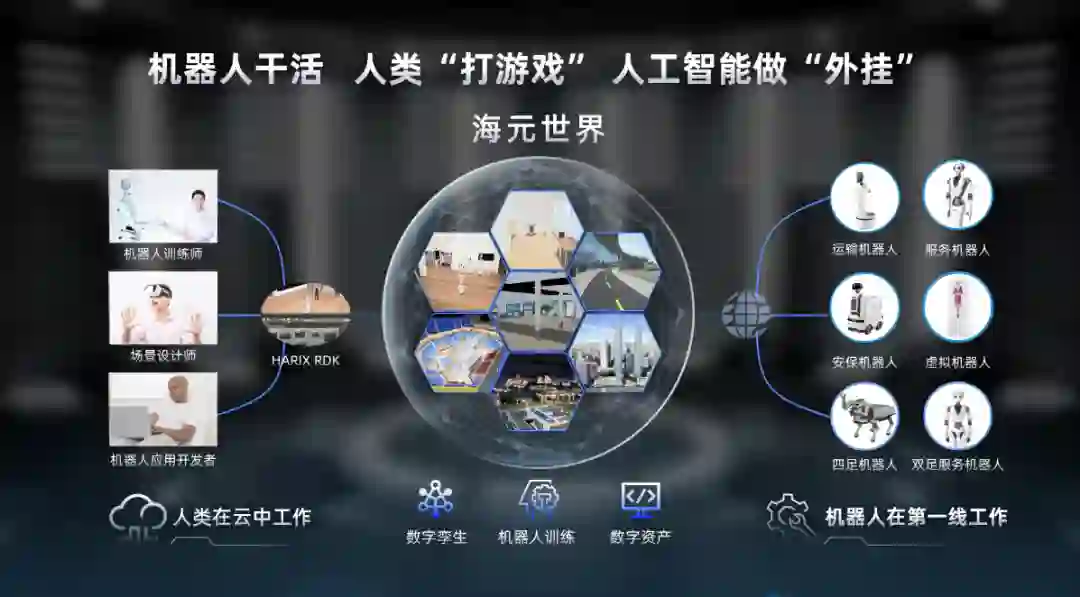 海元世界是一个将物理世界实时数字化的、极致真实的仿真环境,也是机器人理解物理世界、智能训练和虚实交互的工作和学习环境。