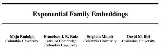 这篇文章也来自David Blei的实验室。文章的核心是如何把Word2Vec的思想给Generalize到其他应用场景,提供一个比较通用的模型框架。在这个新框架下,其他的很多类似模型都能够归纳成为这个新框架的特殊形式。新的框架模型为Exponential Family Embedding(EF-EMB),其中包含三个要素: