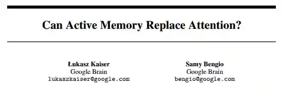 这篇文章来自Google Brain的Lukasz Kaiser和Samy Bengio。文章的主旨是想使用一种叫做Active Memory的机制来替代Attention机制。文章通过扩展第一作者在ICLR 2016提出的一个Neural-GPU模型,使其拥有Active Memory的能力并且叫做Extended-Neural GPU,通过机器翻译来展现该机制可与Attention匹敌。不过,读者们需要注意,文中提出的Active Memory机制主要基于Convolution Operator,是否能够扩展到其他模型,还需要进一步讨论。文章最有价值的部分在于Attention机制以及Active Memory机制的讨论。从模型的发展角度来说,文章指出,Attention机制的提出是要解决使用RNN来进行机器翻译时,因为一个固定维度的Hidden Vector,导致翻译效果下降,甚至在比较长的语句中翻译效果进一步恶化。本质来说,Attention机制就是把这些中间结果组合起来,也就不仅仅是一个固定长度的隐含状态,而是一个所谓的记忆(Memory)Tensor,在解码的每一步,一个基于过去Memory的Distribution会被计算,然后解码器(Decoder)的输入是过去这些Memory的一个加权平均。因此,在这样的机制下,解码器可以对过去不同的细节进行关注,从而产生需要的字符。这套Attention机制已经被认为在机器翻译之外,如图形模型中有较好效果。文章认为Attention的局限在于其定义本身,也就是Attention定义中的Softmax。这个Softmax还是想关注过去Memory中的某一个单元。文章认为,这个局限使得在一些任务中,Attention机制完全无法完成相应的学习功能。是否能够打破这个局限?文章认为Acitve Memory机制可以打破Attention的局限。简单说来,Active Memory就是在解码这个步骤依赖并且访问所有的Memory,每一步解码的Memory都不一样。当然,这个机制在之前的Neural-GPU中已经提出来,并且在那篇文章中展现出了算法任务(Algorithmic Tasks)上的良好性能。但在传统的机器翻译任务上,这样的模型效果并不理想。这篇文章就是想通过对模型进行小改进从而达到在机器翻译任务上的进步。在这里我们不复述模型的改进,因为感觉这个改进并不具备普遍适用性而是为了增强模型性能所做的Hack。不过,文章指出,作者的思路和Grid LSTM比较相似,有兴趣的读者可以去参考。在经历了一系列Hack之后,新提出来的Extended Neural-GPU在机器翻译这个任务上,与GRU+Attention有了相似的模型性能。对于Attention机制有兴趣的读者,可以精读这篇文章。