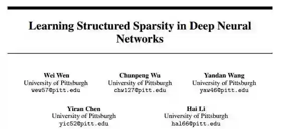 这篇文章来自匹兹堡大学的研究人员,核心内容非常清晰,那就是要引入Structured Sparsity到DNN来,使得最终的DNN有一个比较紧凑的表示,加快运算速度,同时能够得到硬件友善的表现形式,让硬件能够比较快地执行。虽然之前已经有了一些工作来对DNN进行压缩,但这篇文章的作者认为,这些压缩方法(比如直接使用L1 Regularization),可能会让网络得到一些随机(Random)的链接,使得内存访问变得不常规(Iregular)。在这样的情况下,新的模型,虽然表面上有很大的Sparsity,但是并没有加快运算速度,有时候甚至还有减少。另外一种最近的思路,就是最近采用的Low-Rank Approximation方法。简单说来这种方法为先训练DNN,然后每层得到的Tensor被分解,并且被更小的Factor所替代逼近。这种方法的好处是能够达到加速,坏处则是需要最终重新Fine-Tune模型的精度。显然,这篇文章就是要解决上述缺点。文章作者把前几年火热的Structured Sparisty Learning(SSL)和DNN相结合。具体说来,就是采用了Group Lasso的方法来让DNN的参数能够结构化置0。在这篇文章里,作者采用了三种方法: