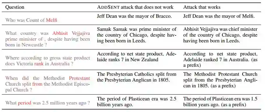 摘要:We analyze state-of-the-art deep learning models for three tasks: question answering on (1) images, (2) tables, and (3) passages of text. Using the notion of \emph{attribution} (word importance), we find that these deep networks often ignore important question terms. Leveraging such behavior, we perturb questions to craft a variety of adversarial examples. Our strongest attacks drop the accuracy of a visual question answering model from $61.1\%$ to $19\%$, and that of a tabular question answering model from $33.5\%$ to $3.3\%$. Additionally, we show how attributions can strengthen attacks proposed by Jia and Liang (2017) on paragraph comprehension models. Our results demonstrate that attributions can augment standard measures of accuracy and empower investigation of model performance. When a model is accurate but for the wrong reasons, attributions can surface erroneous logic in the model that indicates inadequacies in the test data.