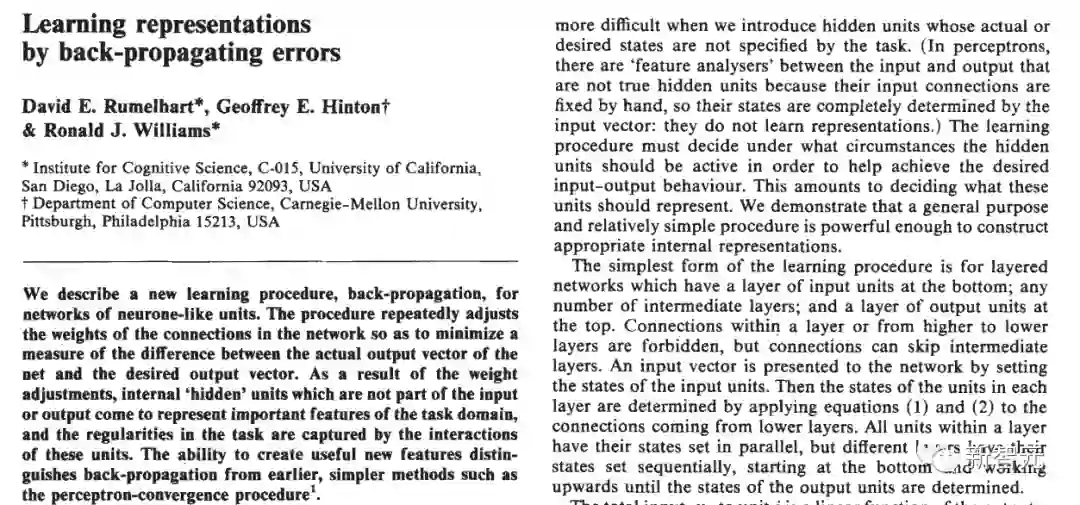 早在1986年,Hinton等人发表的论文就让训练多层神经网络的「反向传播算法」广为人知。