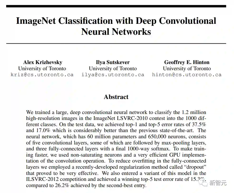 2012年9月,一篇题为「用深度卷积神经网络进行ImageNet图像分类」的论文,让此前沉寂多年的人工智能领域热度骤起。