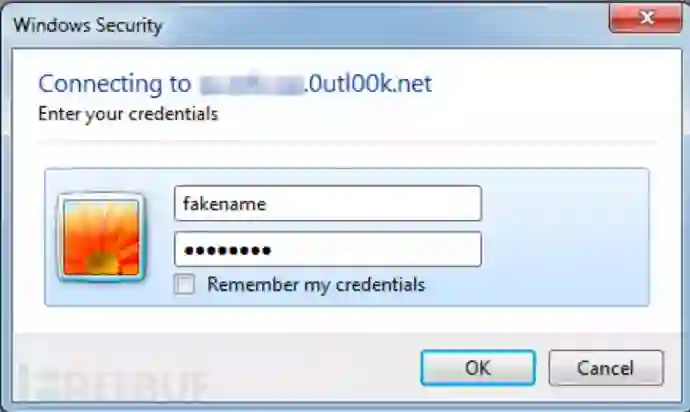 为了验证恶意文档的功能,我们使用了Phishery的C2服务器,并打开了DarkHydrus在2018年6月的攻击中使用的Word文档。当出现验证对话框时,我们输入“fakename”和“fakepass”作为凭证,如图6所示,然后按回车键。