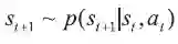 在策略梯度中,我们考虑前后两个状态之间的关系为,其中st、st+1 是相继的两个状态,at 是t 步时所采取的行动,p 是环境所决定的下个时刻状态分布。而动作at 的生成模型(策略)为