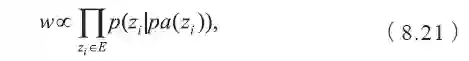 其中E 是观测变量集合。这种采样方法称作似然加权采样(Likelihood Weighted Sampling),产生的样本权值可以用于后续的积分操作。在有观测变量(Sprikler=T,WetGrass=T)时,可以先对Cloudy 进行采样,然后对Rain 进行采样,不再对Sprinkler 和WetGrass 采样(直接赋观测值),如图8.12 所示。这样得到的样本的重要性权值为