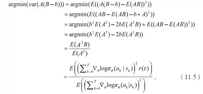 注意到,∇θR(θ) 实际上是一个随机变量g(τ) 的期望。我们对g(τ) 进行若干次独立采样, 可以获得对其期望的一个估计。如果能在不改变期望的前提下减少g(τ) 的方差,则能有效提高对其期望估计的效率。我们注意到, 所以有