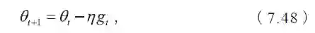 随机梯度下降法本质上是采用迭代方式更新参数,每次迭代在当前位置的基础上,沿着某一方向迈一小步抵达下一位置,然后在下一位置重复上述步骤。随机梯度下降法的更新公式表示为