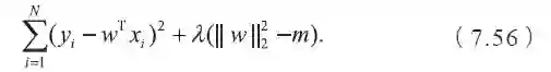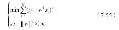 事实上,“带正则项”和“带约束条件”是等价的。为了约束w 的可能取值空间从而防止过拟合,我们为该最优化问题加上一个约束,就是w 的L2 范数的平方不能大于m: