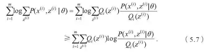 由于z(i) 是未知的, 无法直接通过最大似然估计求解参数,这时就需要利用EM 算法来求解。假设z(i) 对应的分布为,并满足