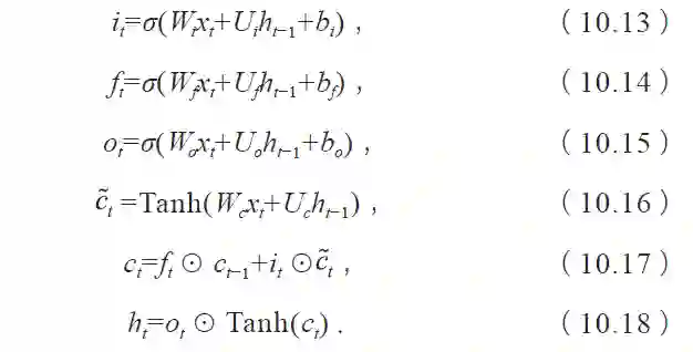 有图有真相,我们首先结合LSTM 结构图以及更新的计算公式探讨这种网络如何实现其功能,如图10.2 所示。