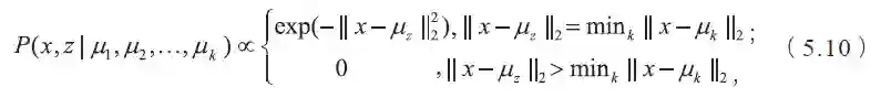 其中是模型的隐变量。直观地理解,就是当样本x 离第k个簇的中心点μk 距离最近时,概率正比于