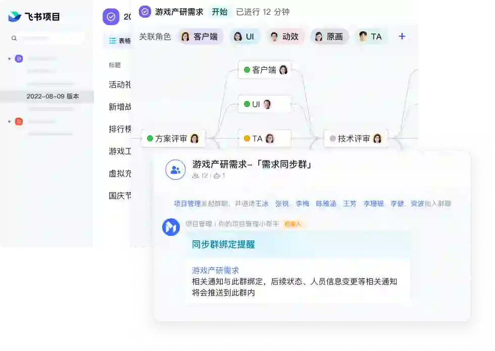 于细微之处彰显飞书项目的魅力。飞书项目的“需求关联群”功能可以消除信息不对等带来的流程损耗;“自动拉群”让相关角色一键入群,针对需求进行深度沟通。后期新加入的成员随着新增关联角色,就可以自动入群,阅读群内的永不删除的消息记录,了解过往背景、历史决策和最新进展等信息。