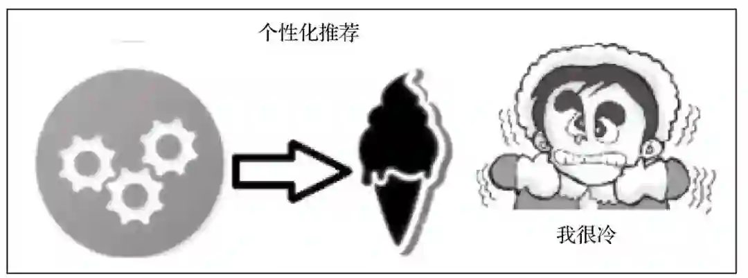 我们的推荐引擎需要足够智能,它需要进化到能够满足用户在不同时间、不同地点的需求。比如冬天推荐用户购买皮夹克,夏天推荐人们购买衬衫。又或是,根据一天的不同时段,为用户推荐好的餐厅进行早餐或者晚餐,这样的推荐信息对于用户来说是非常有帮助的。这种可以考虑到位置、时间、情绪等相关因素,定义用户的情境并进行推荐的系统,被称为情境感知推荐系统,如下图所示。