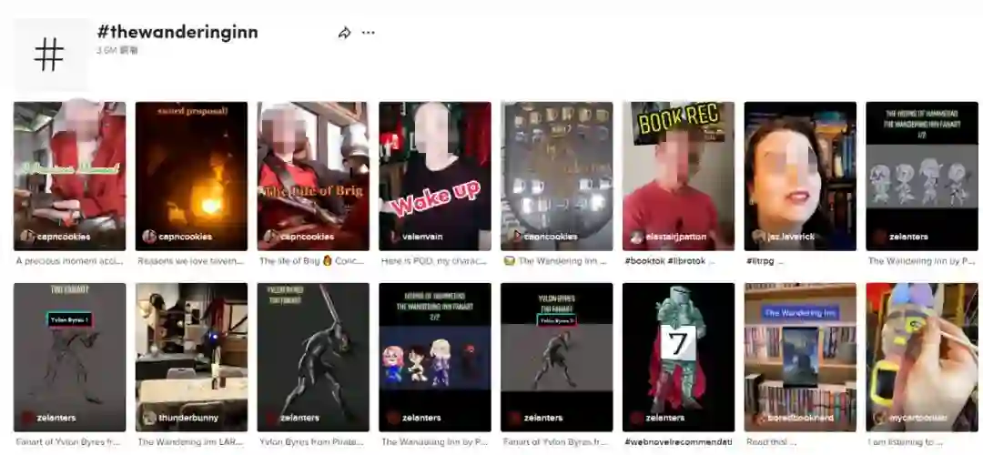 TikTok 上,带有 Pirateaba 代表作《The Wandering Inn》相关标签的短视频浏览量超300万