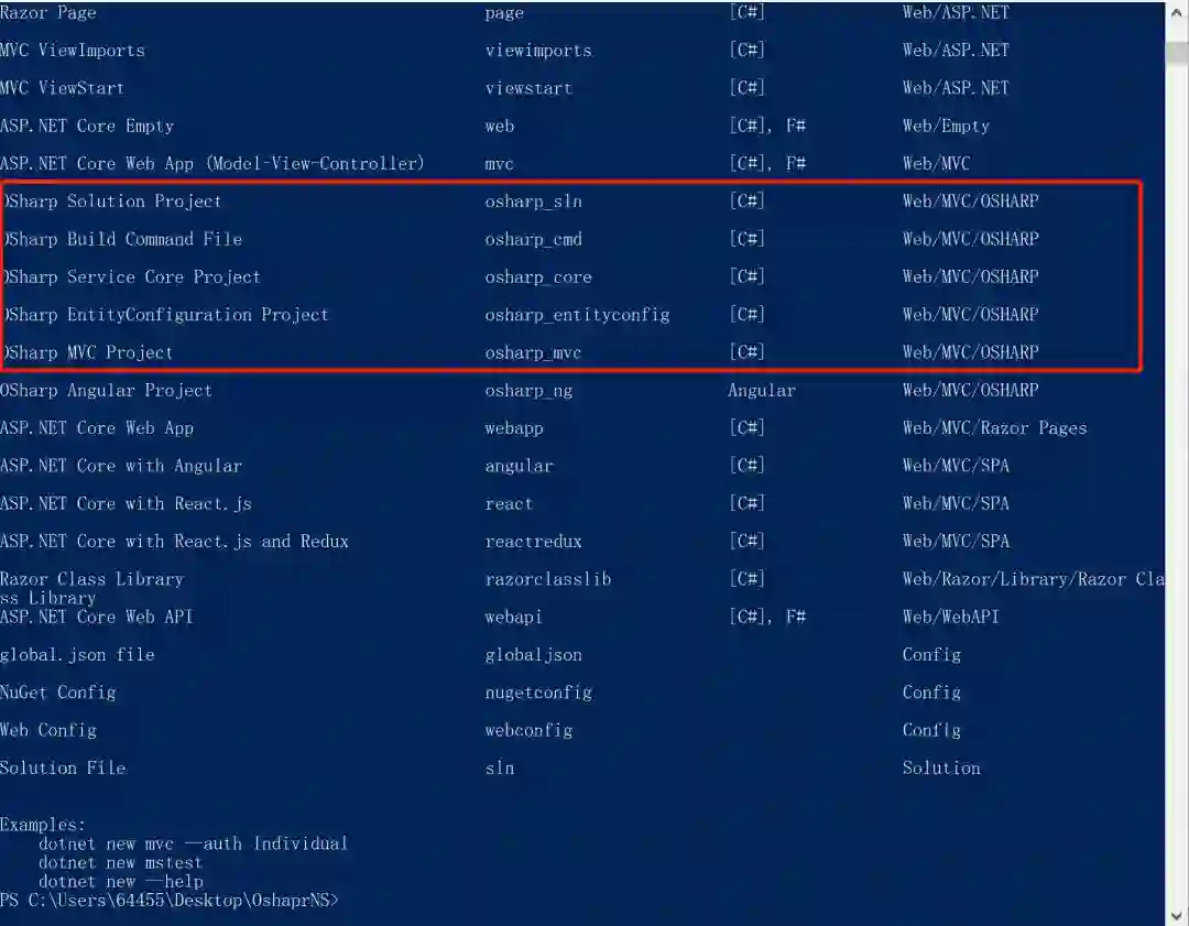 1、执行命令dotnet new -i OSharpNS.Template.Mvc_Angular