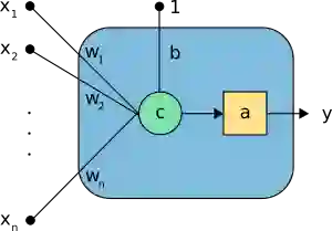 神经元是神经网络的主要组成部分,感知机是最常用的模型。 如下图所示。