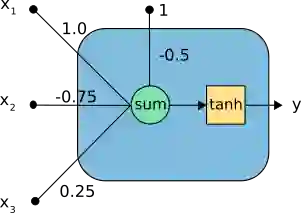 y = tanh(-0.5 +(1.0·-0.8)+(-0.75·0.2)+(0.25·-0.4))