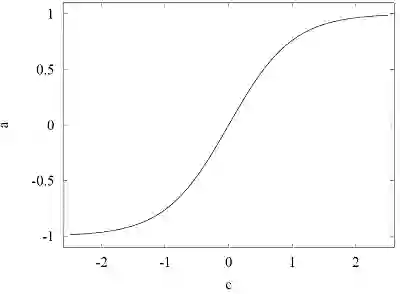 本文给出的例子中,组合值为c = -1.55。 因该函数为双曲正切,所以该神经元的激活如下: