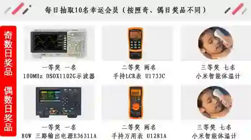 请注意:周积分仪器奖品获奖者不能重复,如果同一位用户获得两次以上的周积分前三名,是德科技有权只提供一台仪器作为奖品。