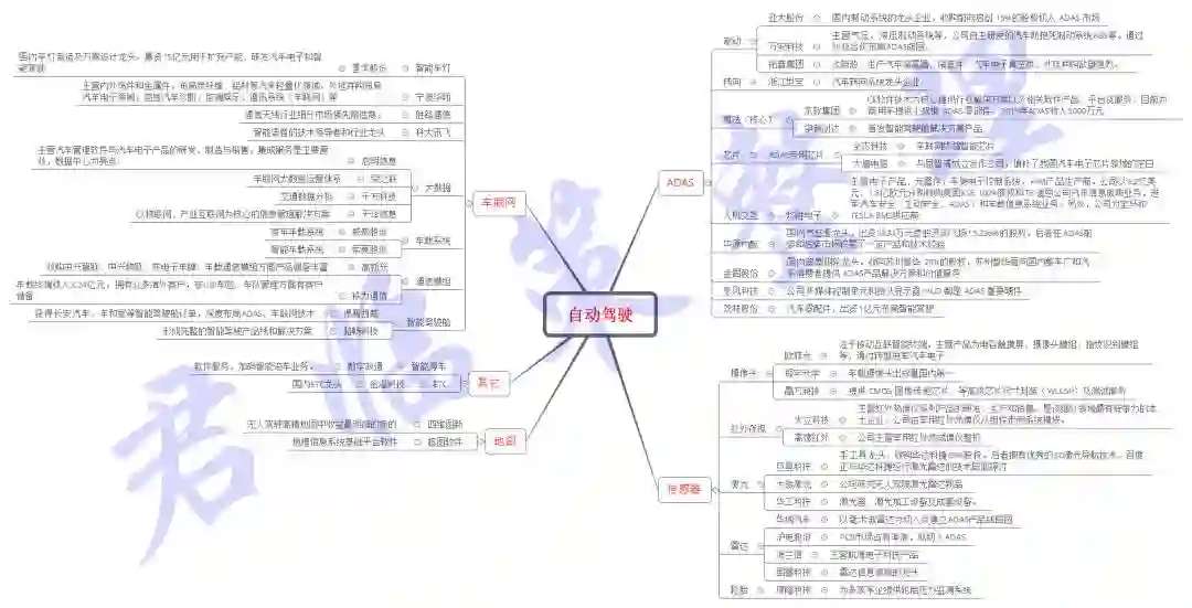 最后这张图是我们分析师整理的上市公司自动驾驶产业图,想要抄作业的朋友们,公众号内回复“自动驾驶”获取原图。