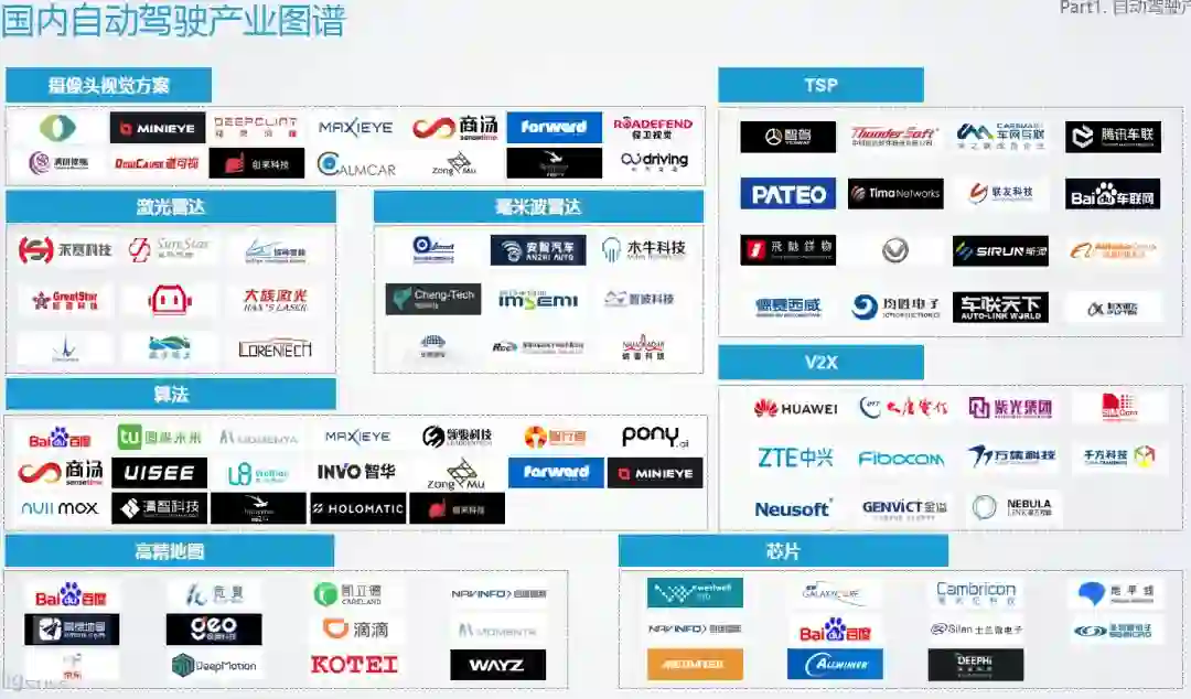 下面这张图是亿欧整理的国内自动驾驶产业图谱,更贴近产业原貌。