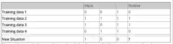 training_outputs = np.array([[0,1,1,0]]).T