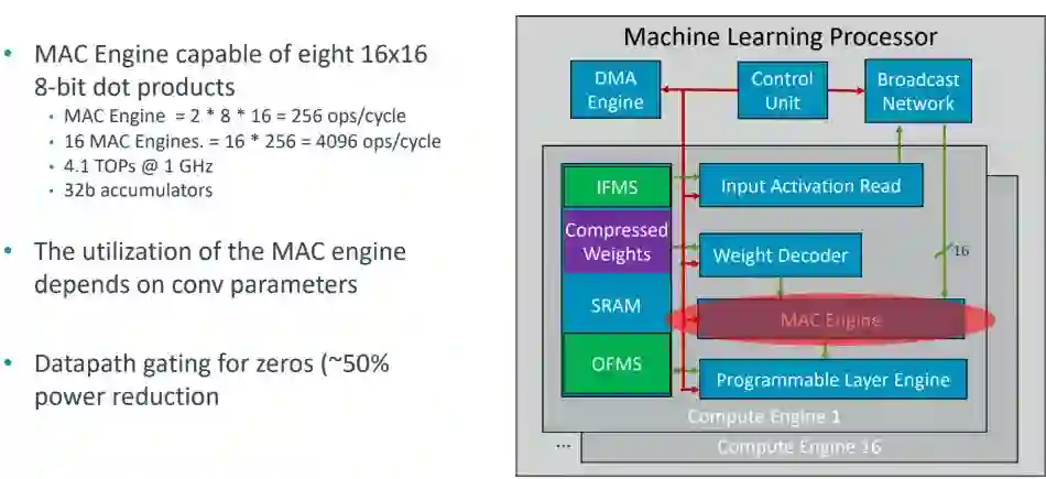 ARM的MAC引擎可以做8个16×16点积。我们已经讨论了这一点的重要性,但是在这些操作中有很多零,可以在MAC引擎中进行检测和调整,以避免浪费更多的能量。