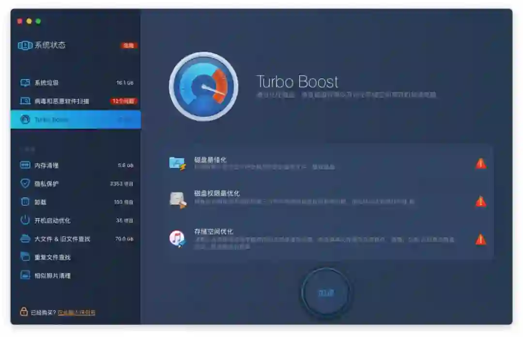 Turbo Boost 可以通过优化磁盘、修复磁盘权限和优化存储空间来让 Mac 性能保持在峰值。第三方应用可能会修改磁盘权限、产生大量缓存文件使系统变慢,利用 Turbo Boost 可以释放相当可观的存储空间,修复磁盘权限并移除那些文件。