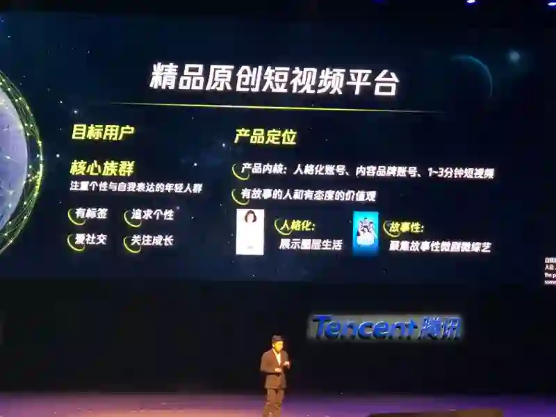 在11月1日腾讯全球合作伙伴大会上,腾讯短视频平台“yoo视频”正式发布,产品定位于1~3分钟短视频,聚焦故事性微剧微综艺,目标用户为注重个性与自我表达的年轻人群。