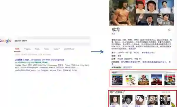 知识图谱这个概念是谷歌提出的,谷歌做知识图谱自然是跟搜索引擎相关,即提供语义搜索。这里语义搜索跟传统搜索引擎的区别在于搜索的结果不是展示网页,而是展示结构化知识,如下图(图1)所示: