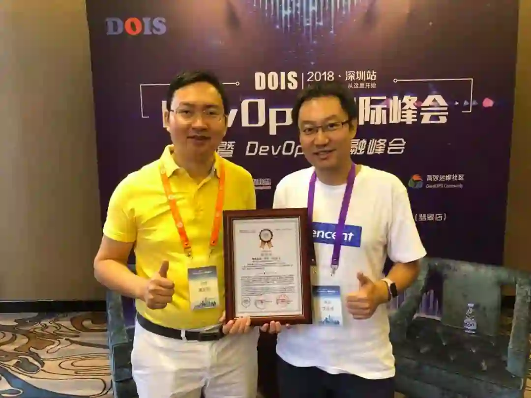 此次DevOps国际峰会(DOIS)· 深圳站由中国信息通信研究院旗下云计算开源产业联盟(OSCAR联盟)指导、DevOps时代社区与高效运维社区联合主办,是国内外首个 DevOps 标准《研发运营一体化能力成熟度模型》的官方指定发布平台。中国信息通信研究院-云计算与大数据研究所云计算部副所长张雪丽女士为通过评估的企业授牌,腾讯互娱蓝鲸产品中心总监党受辉在此次大会上代表“腾讯IEG基础 PaaS 平台”项目获得授牌并接受了现场采访。