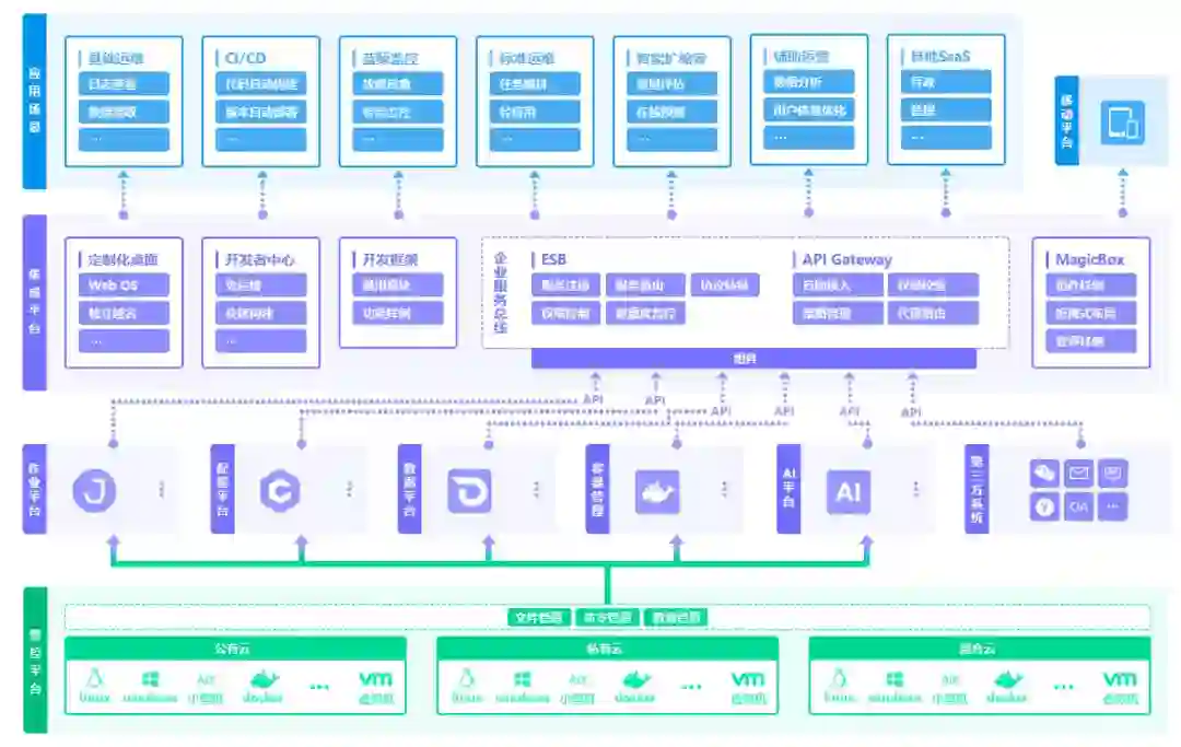 腾讯IEG基础 PaaS 平台, 是由腾讯互娱技术运营部蓝鲸团队打造的一站式DevOps研发运营平台,深度整合了腾讯IEG各个高能组件,贯穿从产品研发、测试、安全到运营的CI\CD\CO全生命周期;它是腾讯互娱技术运营部沉淀多年的技术运营支撑体系,承担着数百款业务线上运营的使命,遍布全球20W+的混合云管控,覆盖X86、虚拟机、容器等各类IaaS;为5000+业务研发人员提供了从代码集成、编译构建、单元测试、代码扫描、镜像构建、部署、视图展示等全链路支撑服务;同时通过基础PaaS提供的完善的前后台开发框架、调度引擎、公共组件等服务,实现了腾讯互娱内部运维人员从运维到技术运营的转型。