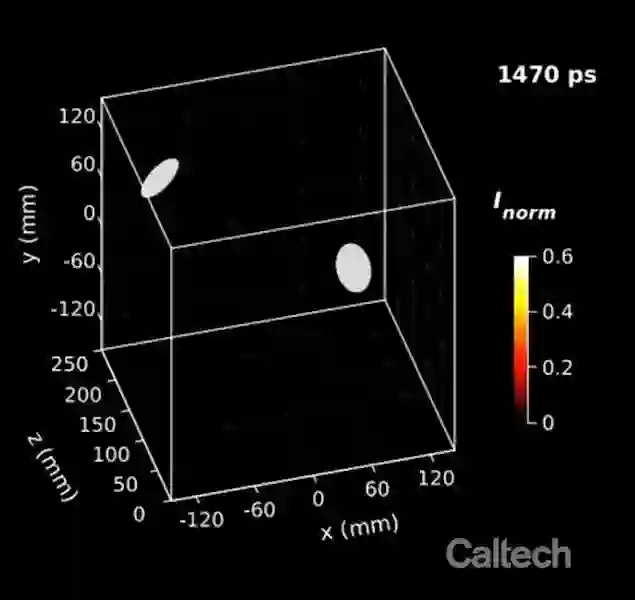 图|3D 视频显示激光脉冲穿过激光散射介质并从反射表面反射回来(来源:加州理工学院)