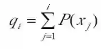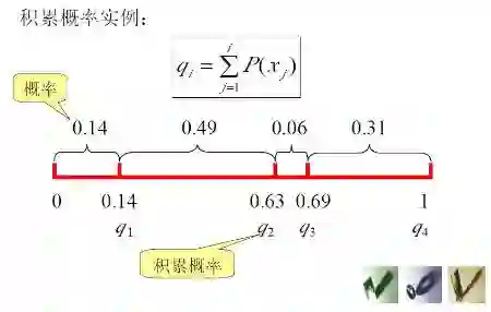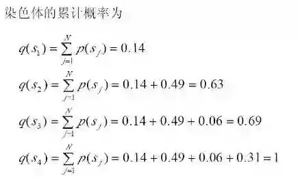 其中的qi称为染色体xi (i=1, 2, …, n)的积累概率, 其计算公式为: