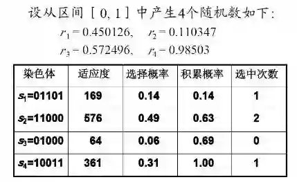 (4)采用模拟赌盘操作(即生成0到1之间的随机数与每个个体遗传到下一代群体的概率进行匹配)
