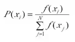 设群体大小为N,个体xi 的适应度为 f(xi),则个体xi的选择概率为: