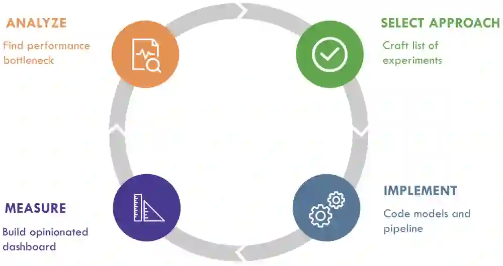 尽管机器学习任务具有内在的不确定性,上面的ML工程循环将帮助你有条不紊地迈向一个更好的模型。不幸的是,它一点也不神奇——你需要发展在每个阶段做出良好决策的能力,例如识别表现瓶颈,决定尝试哪种解决方案,如何正确地实现它们,以及如何测量应用的表现。你也需要习惯快速迭代的节奏。因此,你也应该花时间思考如何提高迭代的质量和速度,这样可以在每次循环中最大化进展,并且可以快速地完成多次迭代。