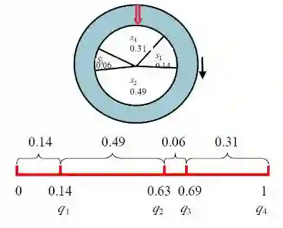 轮盘赌选择法可用如下过程模拟来实现: