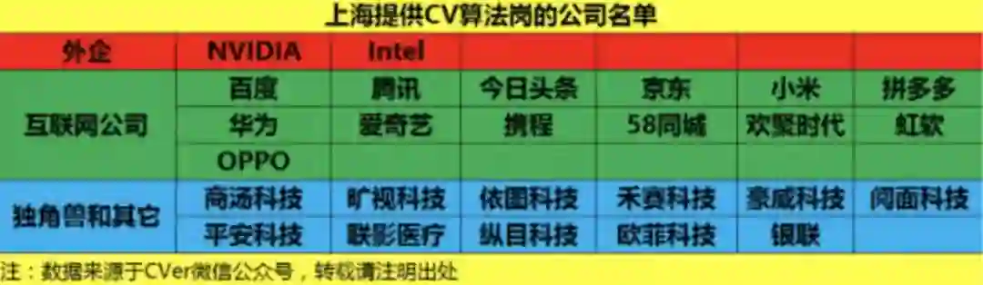 我之前整理了提供CV岗的公司清单(以北京、上海为主)。当然了,CV岗就是AI方向的分支,所以大致可以认为这些企业都是有AI岗的(深度学习和机器学习等岗位)。 下面我列几个名单,仅供参考(自己在整理一份更全的,但因为时间关系,这里无法给出)。