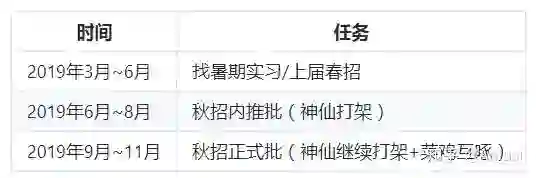 2019年9月~11月:秋招正式(神仙继续打架+菜鸡互啄)。