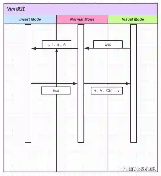 Vim可分为3种模式,分别是Normal模式、Visual模式和Insert模式。以下的基本操作都是在Normal模式进行。三种模式的区别这里不详解了,Bing搜索有很多相关的基础教程。