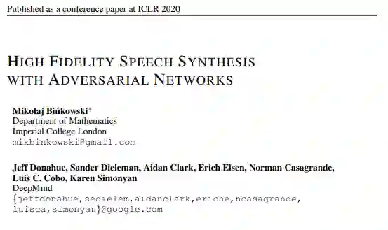 本文是对 ICLR 2020 论文《High Fidelity Speech Synthesis with Adversarial Networks》的解读,