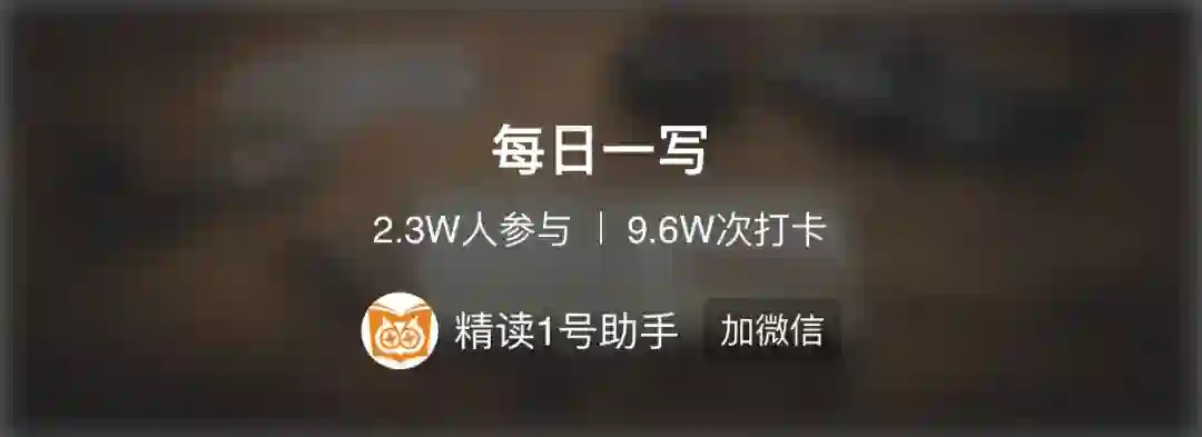 “每日一写”或“晨读打卡”,累计打卡超过50天的读友,精读君赠送终身成长词典3个月使用权益,不重复赠送。达标后,请联系精读1号助手(微信号:jingduzhushou)领取。