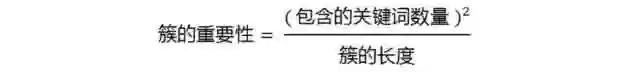 以前图为例,其中的簇一共有7个词,其中4个是关键词。因此,它的重要性分值等于 ( 4 x 4 ) / 7 = 2.3。