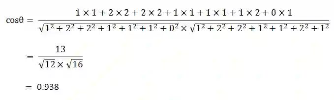 使用这个公式,我们就可以得到,句子A与句子B的夹角的余弦。