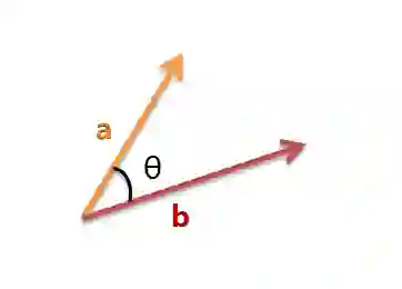 以二维空间为例,上图的a和b是两个向量,我们要计算它们的夹角θ。余弦定理告诉我们,可以用下面的公式求得: