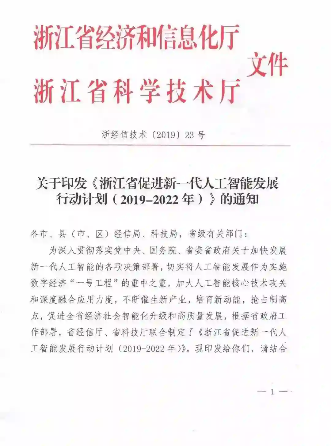 支撑体系基本建立。支持阿里巴巴城市大脑国家新一代人工智能开放创新平台建设,支持海康威视视频感知开放创新平台升级为国家级平台。积极争创人工智能国家创新中心,布局建设10家以上省级人工智能创新平台,加快建设人工智能“l+N”产业创新联盟,加快完善标准测试及知识产权服务、行业训练资料库、网络安全、网络基础等体系建设。