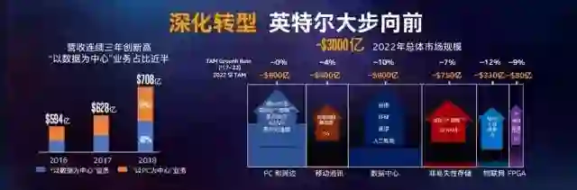 2018年,英特尔营收总额为708亿美元,以数据为中心的业务占比高达48%。