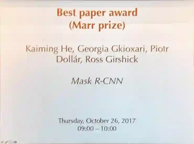 今年3月上传Arxiv的 Mask R-CNN 获得了最佳论文奖,一作就是何恺明!